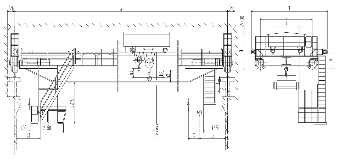 QD型通用橋式起重機(jī)主要尺寸圖紙: