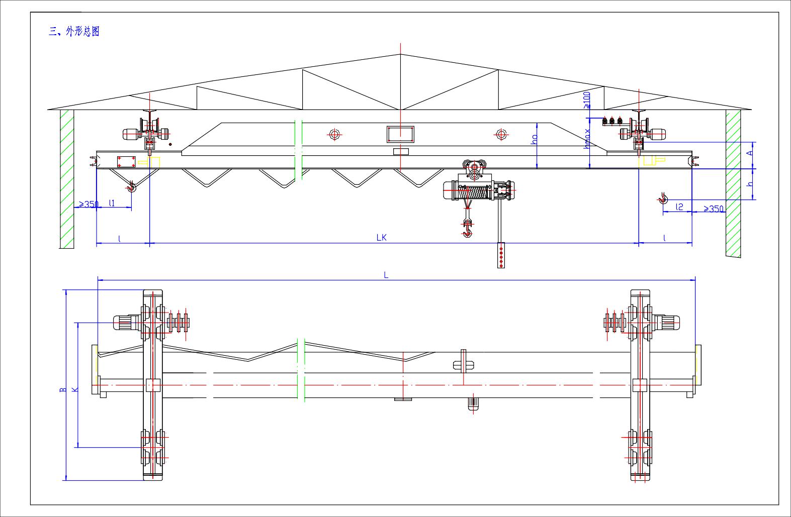 LX型單梁懸掛起重機(jī)主要尺寸圖紙: