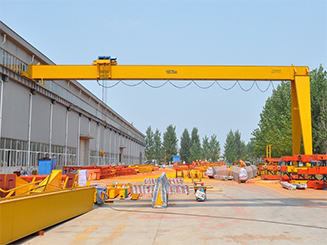 它們由龍門架結(jié)構(gòu)組成,該龍門架結(jié)構(gòu)由水平梁組成(吊裝機(jī)在其上運(yùn)行),該梁的一端連接到單個(gè)立柱。梁的另一端沿著升高的導(dǎo)軌行進(jìn),該導(dǎo)軌安裝在建筑物的墻壁或柱子或?qū)S玫莫?dú)立式龍門鋼結(jié)構(gòu)上。立柱的底座通常將使用輪胎或地面導(dǎo)軌沿地板運(yùn)行。